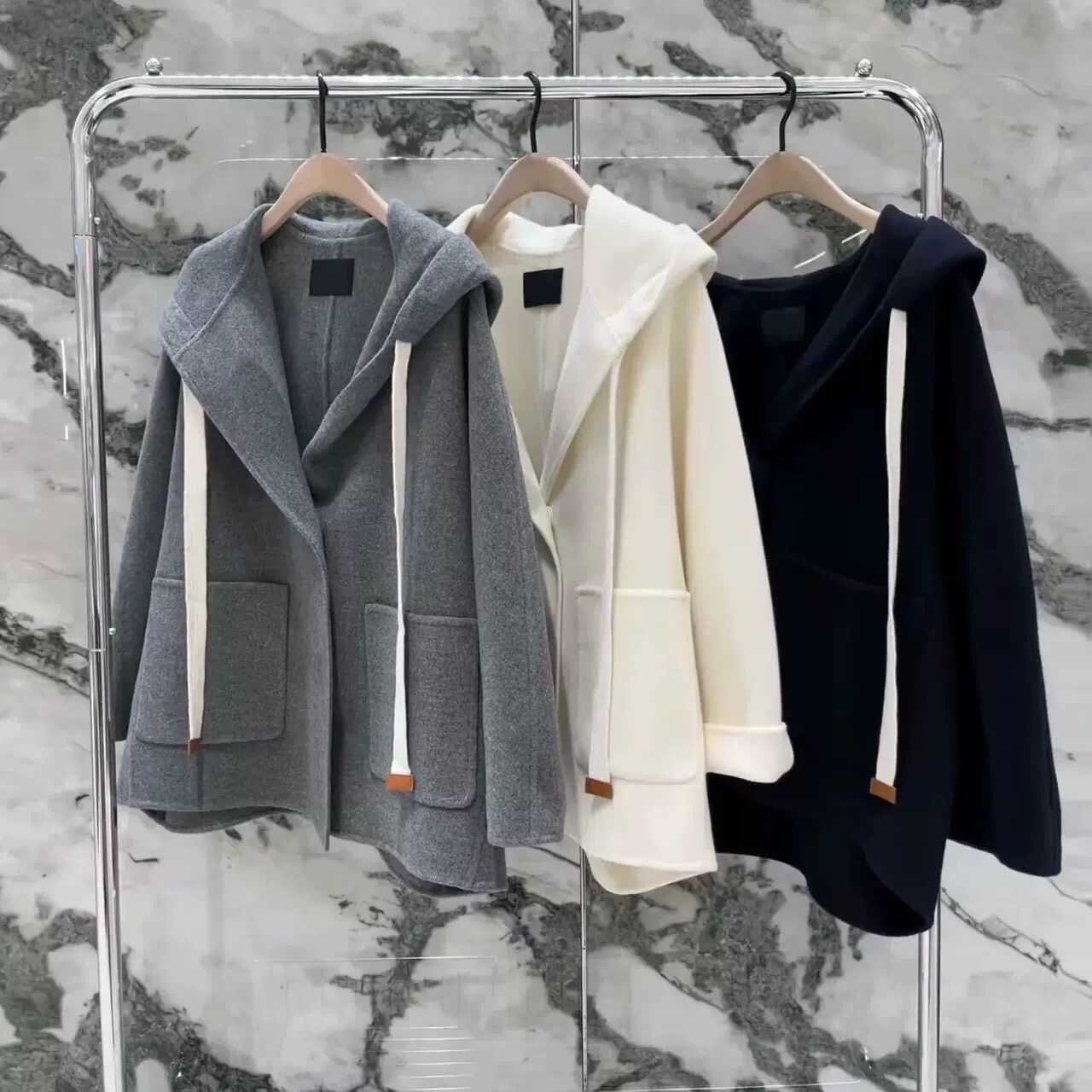 正品大衣2025秋新品美丽诺绵羊毛双面呢连帽茧型高街风MBE3OVCT02
