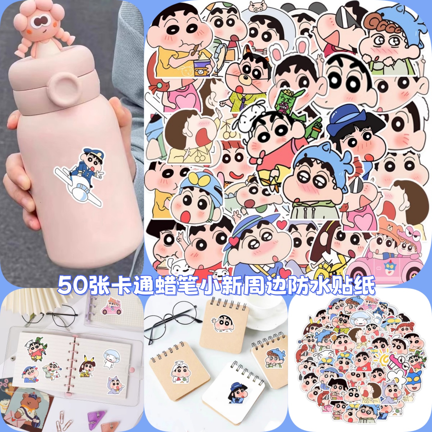 50张卡通蜡笔小新周边防水贴纸盲盒礼物摆件儿童可爱表情包创意涂鸦汽车笔记本电脑摩托车手机壳保温杯小贴画