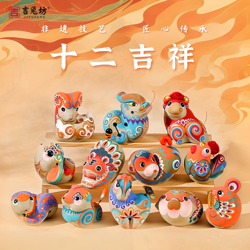 吉兔坊十二生肖守护祝福礼物非遗手工泥塑吉祥礼品家居摆件伴手礼