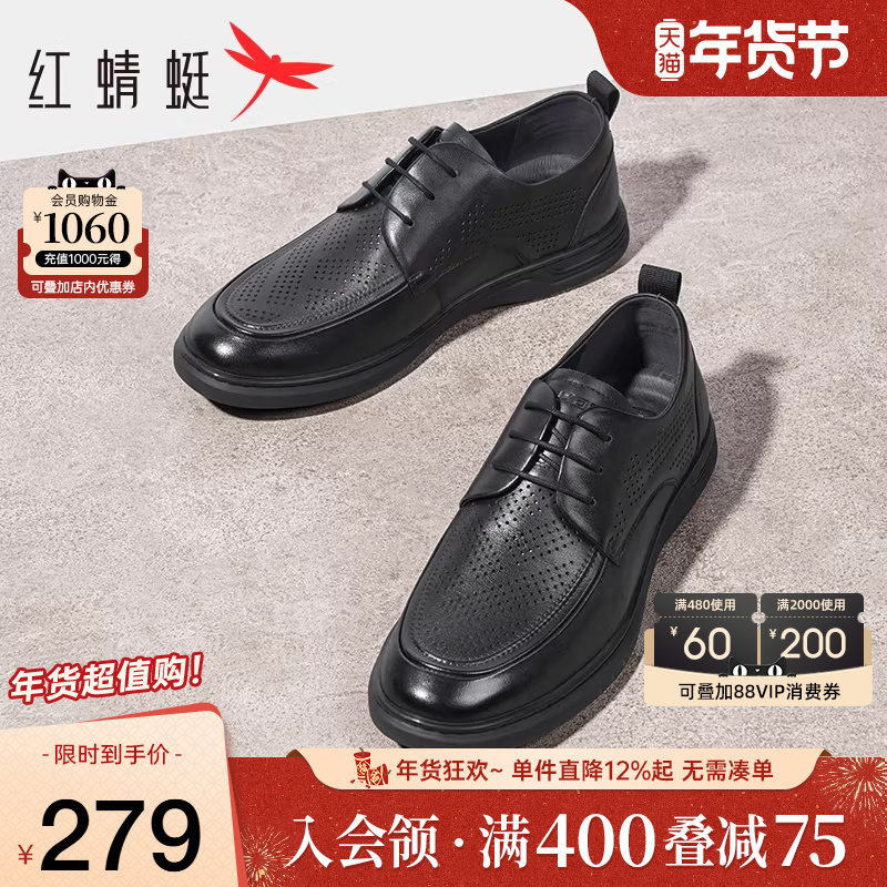 红蜻蜓男鞋夏季新款镂空牛皮德比鞋男商务透气正装皮鞋真皮皮凉鞋