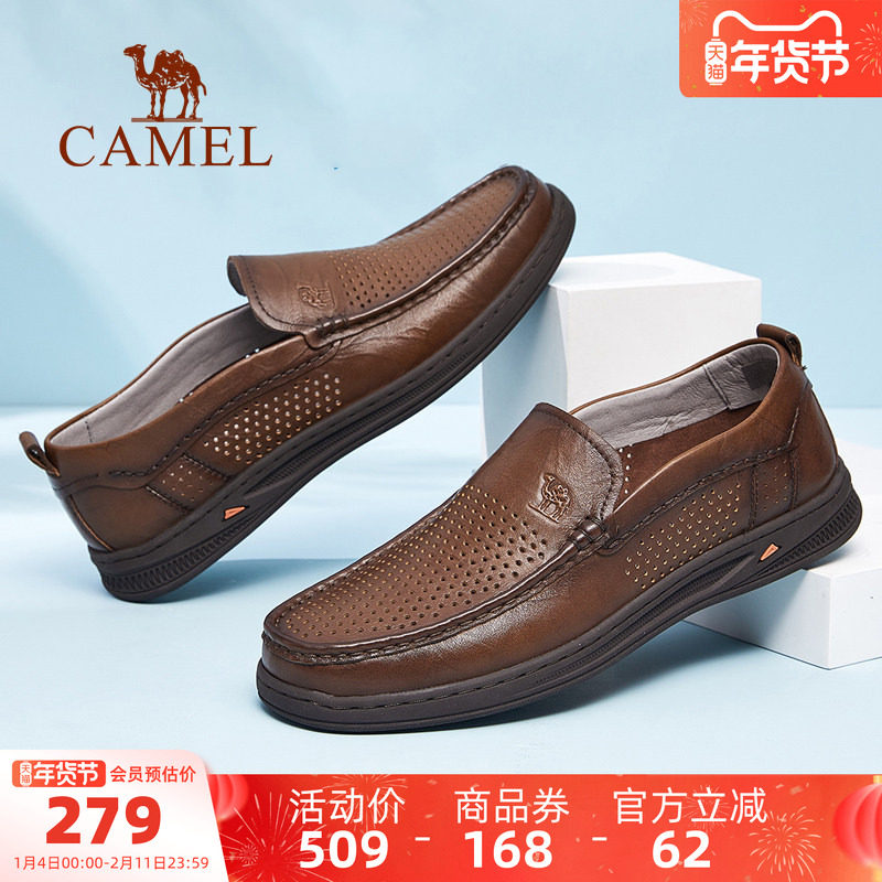 骆驼男鞋2025夏季新款休闲皮鞋男士防滑镂空透气真皮商务爸爸鞋子