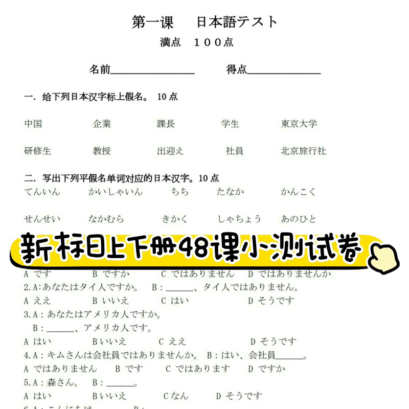 新标日语初级入门同步练习日语作业上下册试卷初级中日交流标准日本语N5N4真题卷历年模拟新日标日语