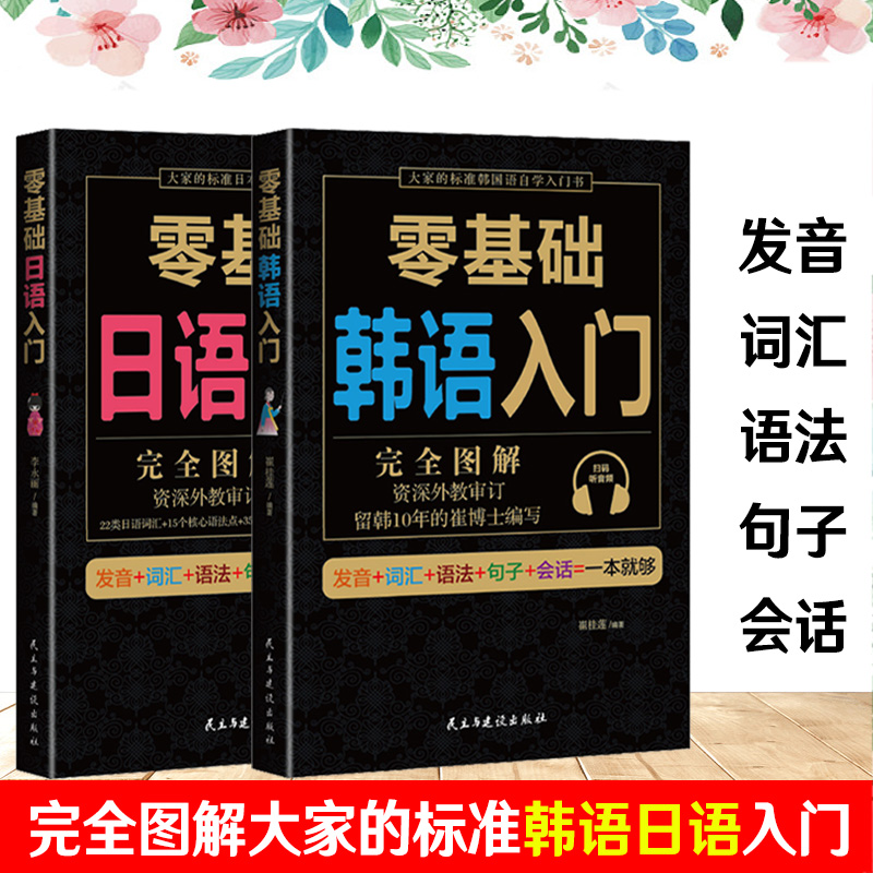 零基础日语入门零基础韩语全套2册新标准入门基础日语韩语自学教材书日语自学初级韩国语韩语书籍零基础自学韩国语教材韩语单词