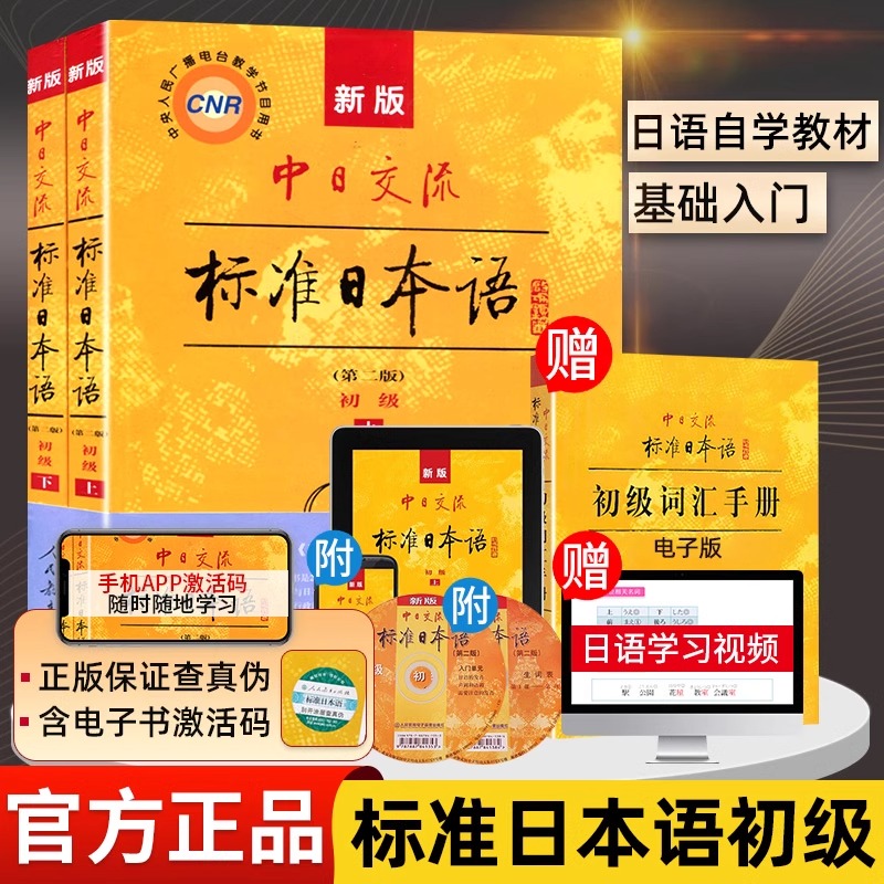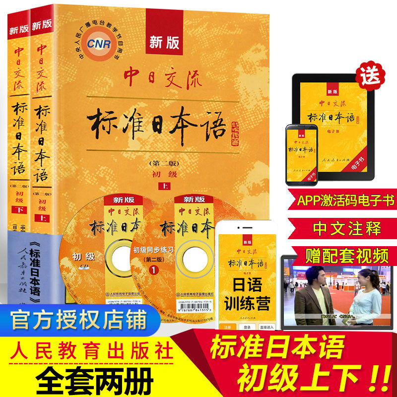 新标准日本语初级上下册中日交流日语自学教材第二版零基础快速入门进阶日语词汇语法教程 含激活码附CD光盘电子书 人民教育出版社