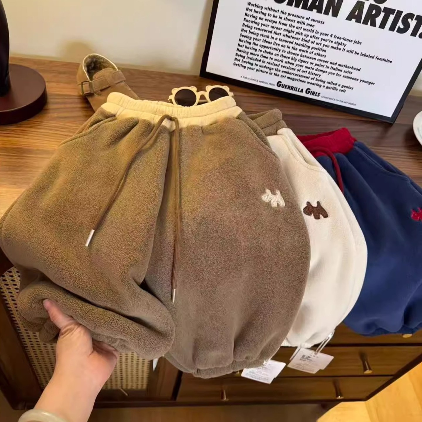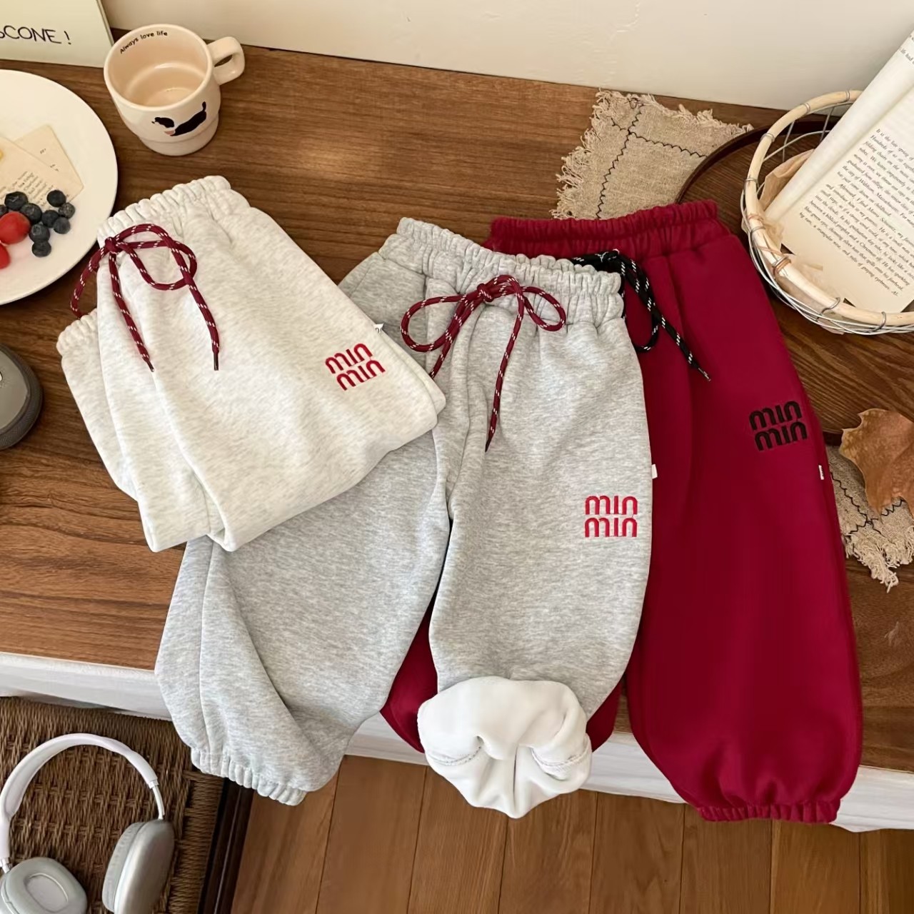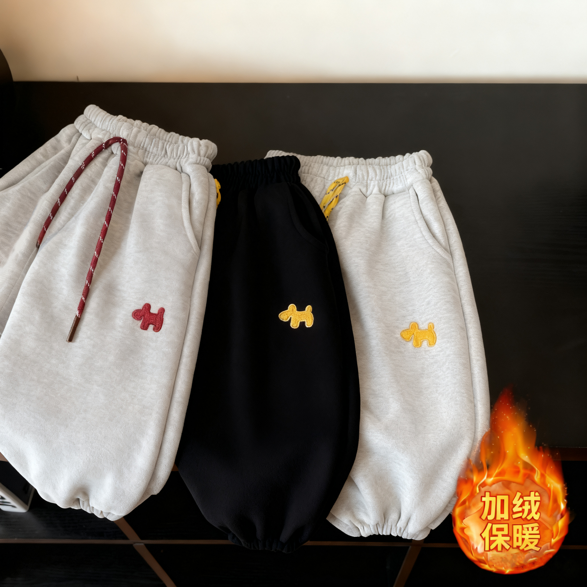 儿童加绒裤子秋冬保暖宝宝韩版字母刺绣男童女童束脚休闲运动卫裤