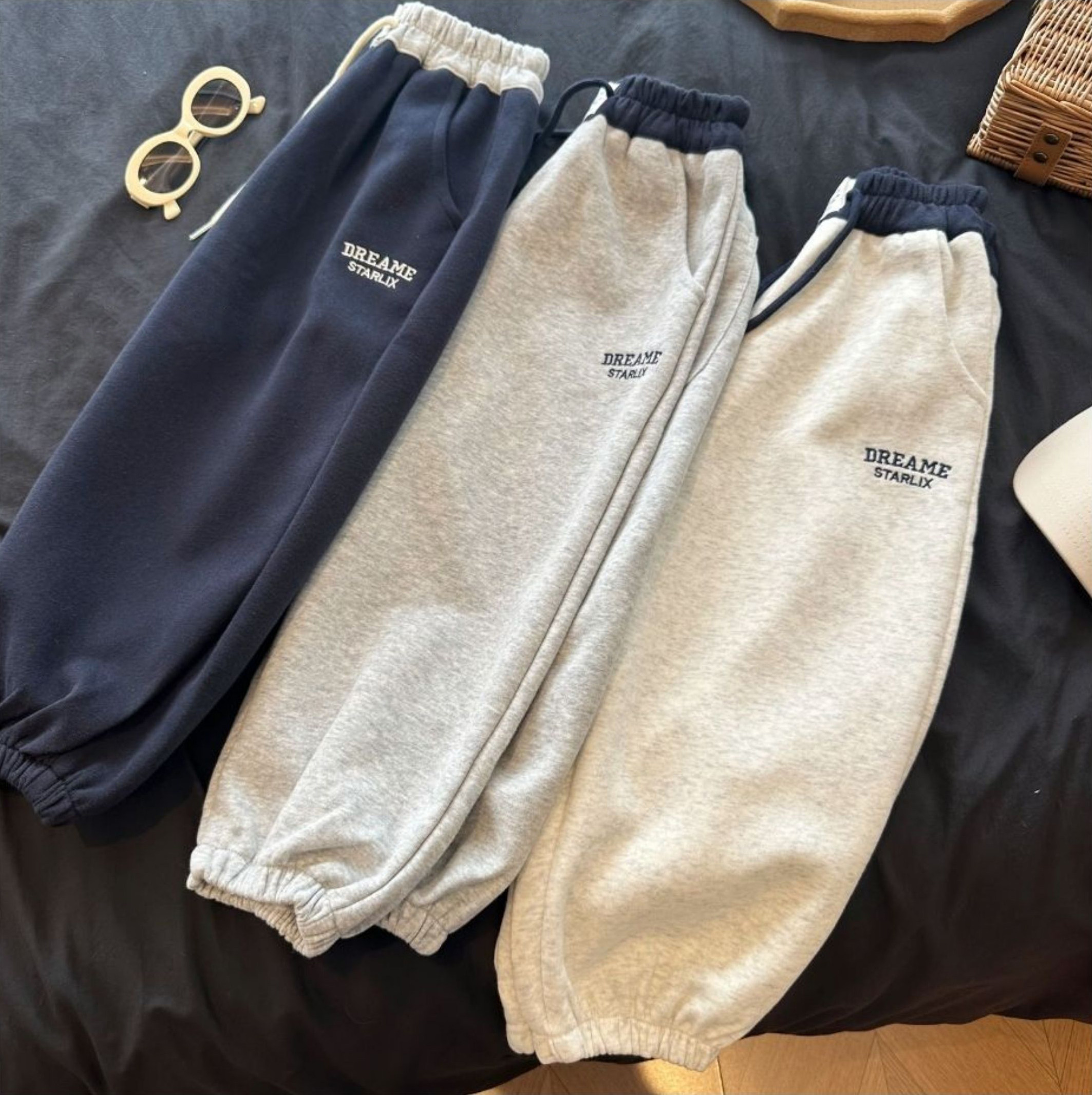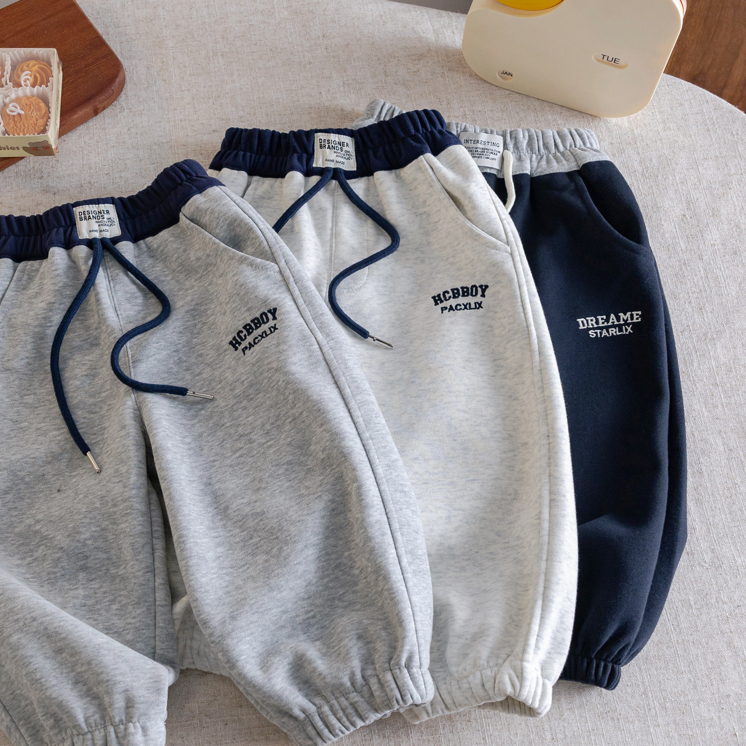 儿童裤子春秋冬2025新款字母刺绣男女童宝宝韩系洋气束脚运动卫裤