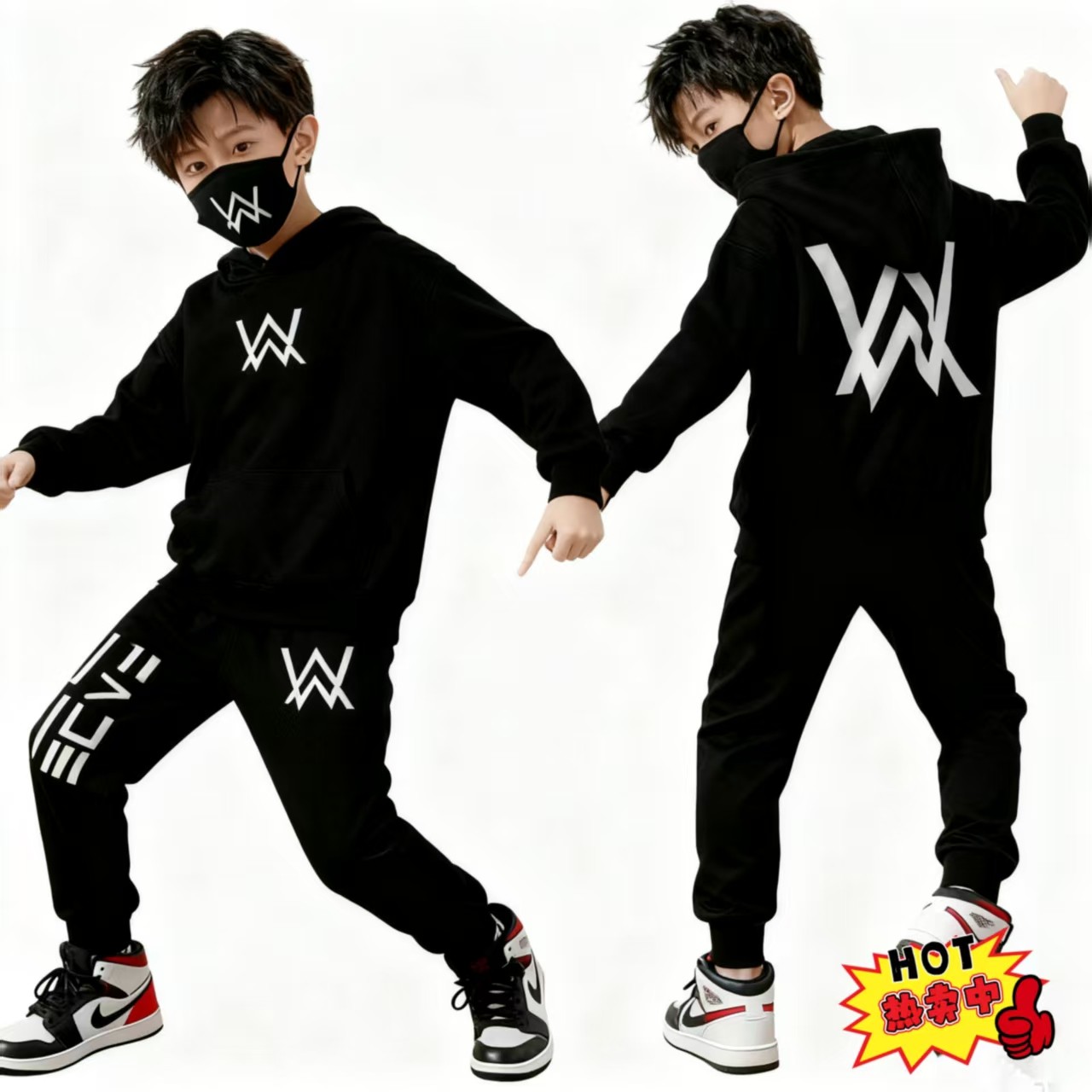 嘉豪同款儿童卫衣服饰三件黑口罩夜光战役男外套装艾伦沃克裤子上