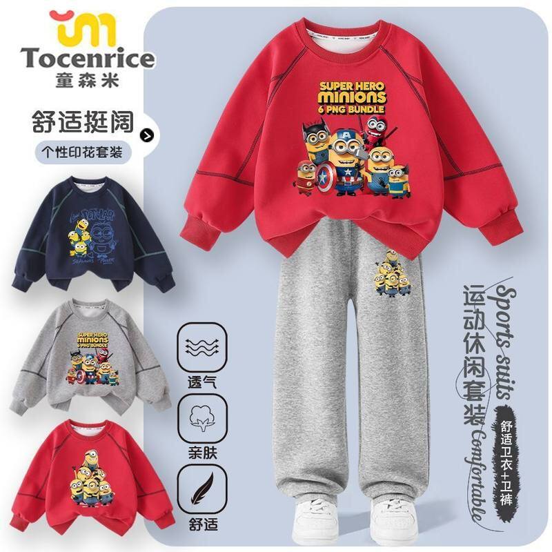跨境卡通动漫小黄人男童卫裤套装秋季儿童运动服卫衣长裤子两件套