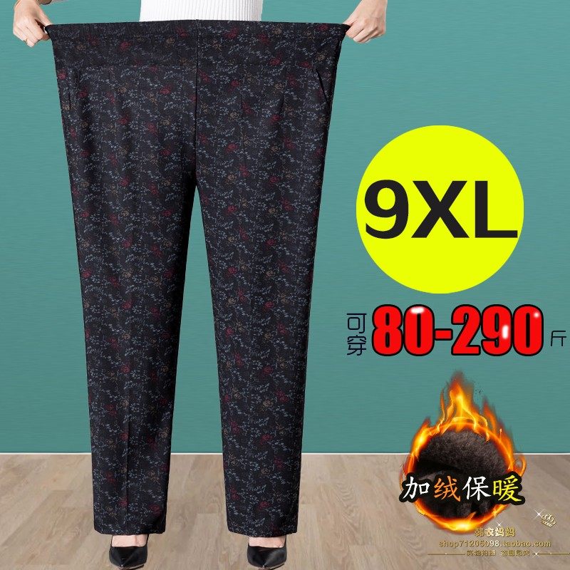 胖人老奶奶裤松紧腰长裤加肥大码中老年人女裤秋冬加绒妈妈花裤子