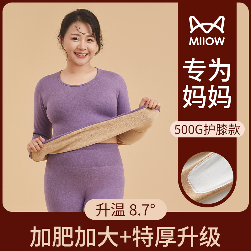 猫人大码胖mm保暖内衣女套装加绒加厚加肥中老年妈妈秋衣秋裤冬季