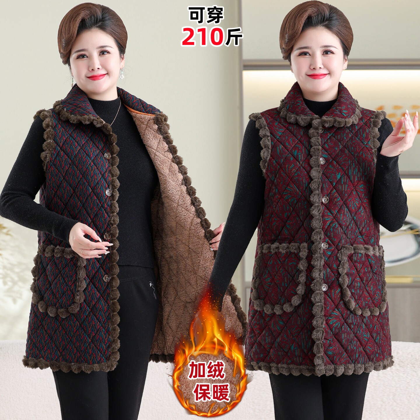 中老年女士秋冬加厚马甲特大码胖妈妈装加绒保暖背心奶奶坎肩外套