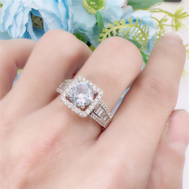 Young跨境仿真莫桑钻订婚戒指女高级感轻奢镶钻女王锆石女戒指环