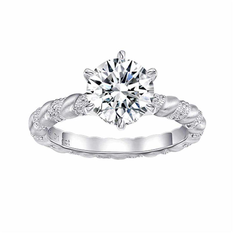PT950铂金莫桑石钻戒1克拉钻石圆包四爪情侣求婚订婚戒指新潮款女
