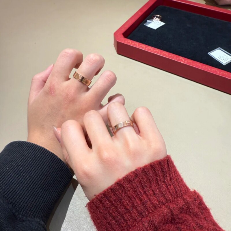 结婚高质量卡家订婚戒指18K金宽窄版三钻六钻满钻情侣指环戒黄金