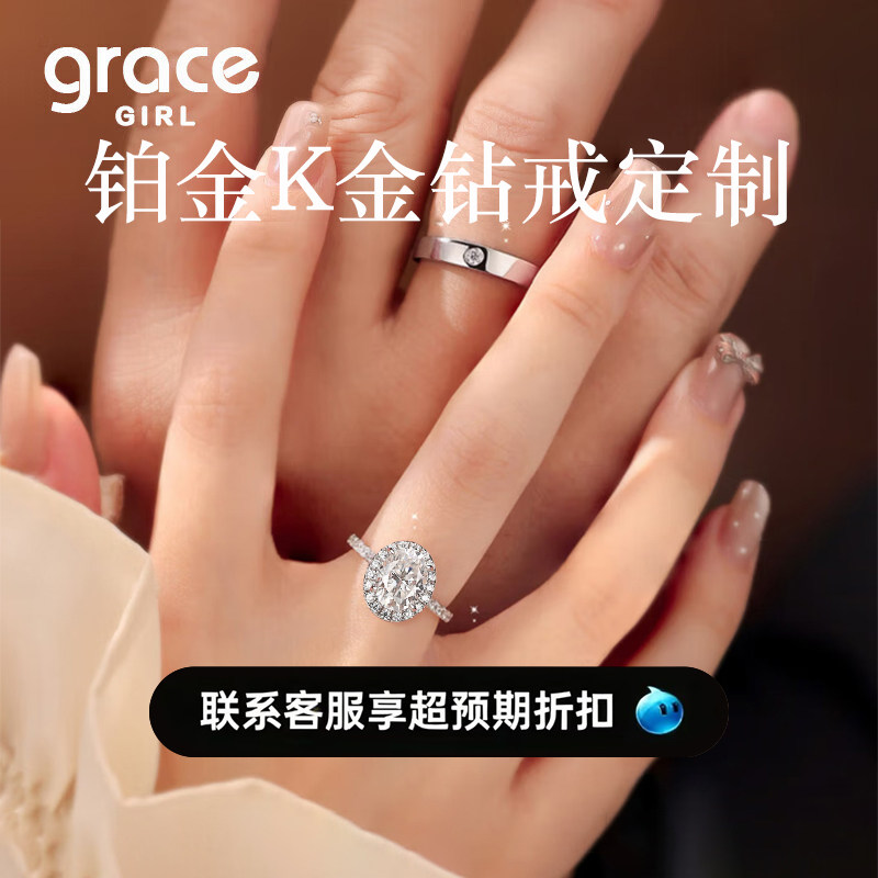 Grace Girl培育钻石铂金18K金群镶大克拉钻戒托求婚订婚戒指定制