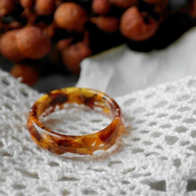 生态树脂戒指-真花戒指-透明树脂-自然灵感订婚戒指-植物手工饰品