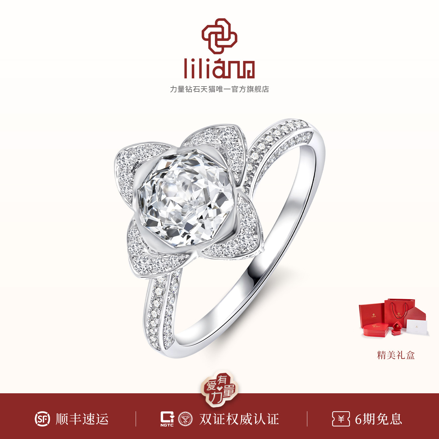 力量钻石力量之花新品培育钻石戒指18K金一克拉钻戒求婚订婚戒指