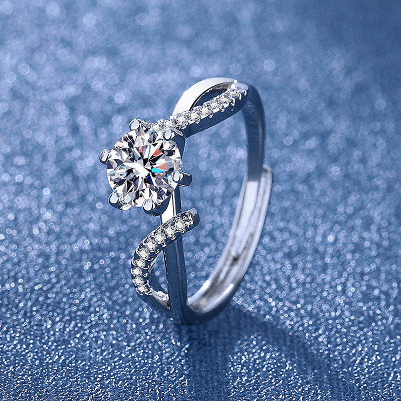 Young抖音直播镀pt9502克拉仿莫桑石八心八箭钻石开口订婚戒指女