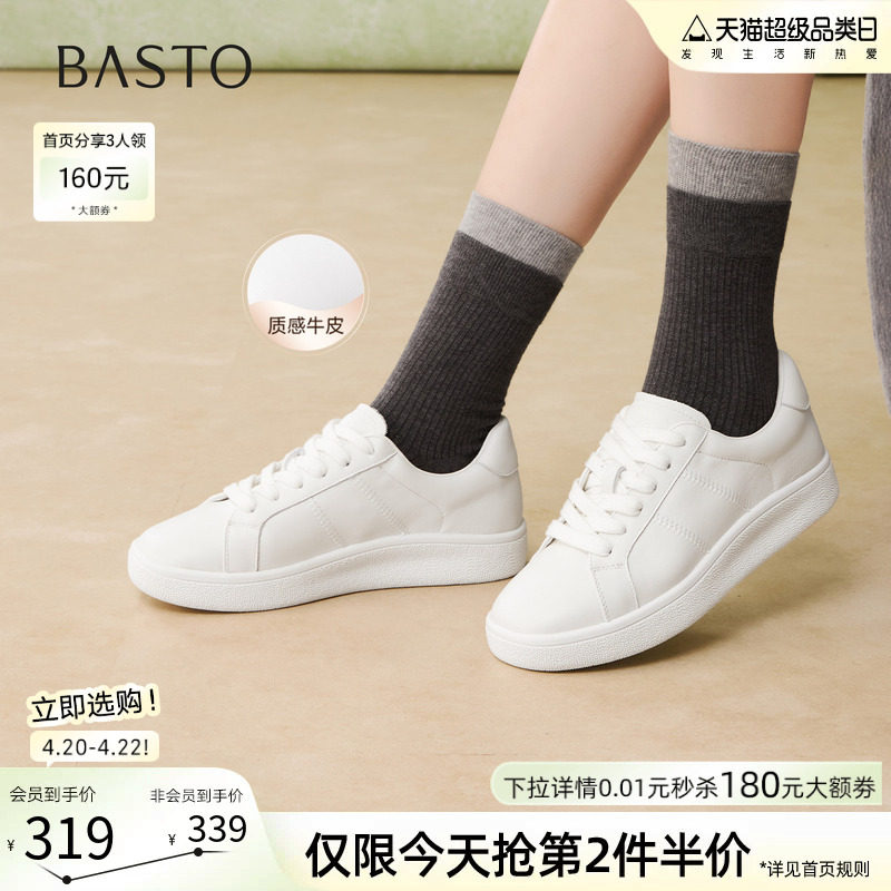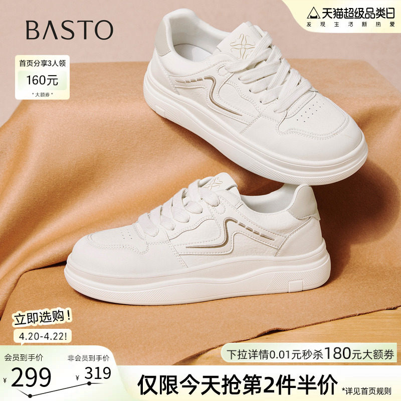 百思图2026春季商场新款厚底小白鞋舒适轻便运动女休闲鞋D3762AM6
