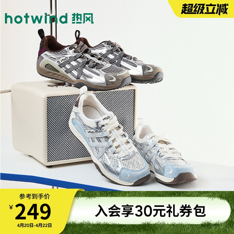热风运动休闲鞋2026年春季新款透气网面老爹鞋百搭女鞋H42W26132