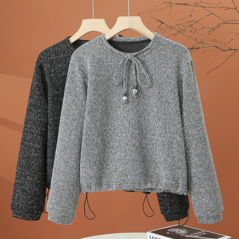 长袖套头圆领卫衣女春秋2025新款爆款时尚洋气小个子抽绳短款上衣