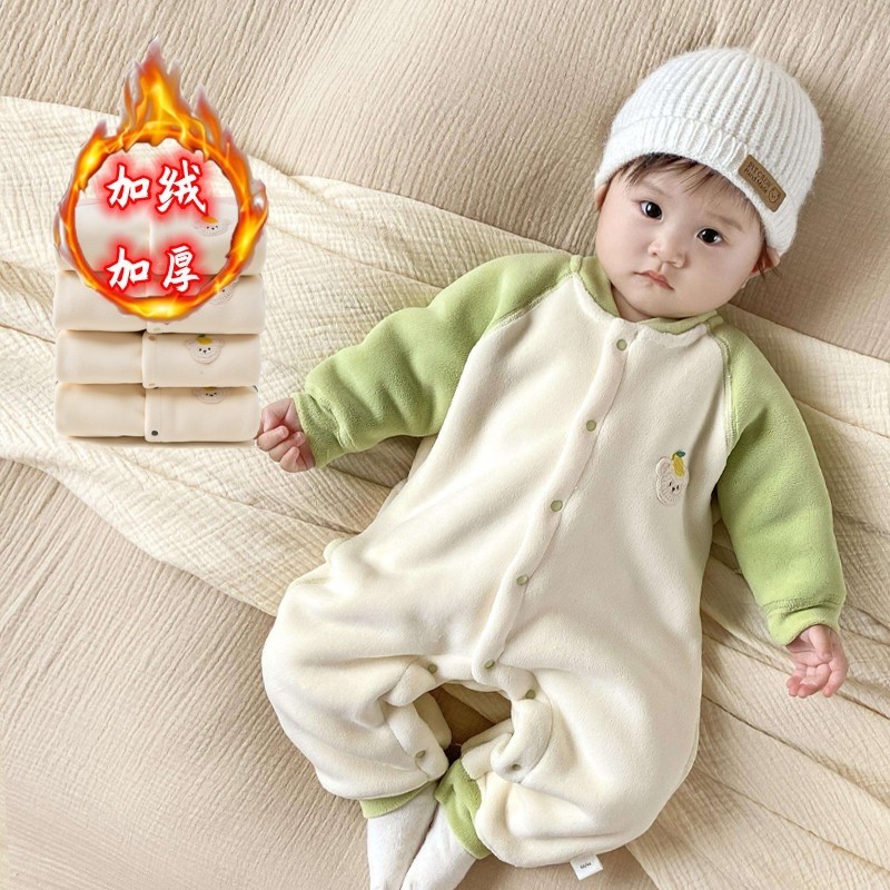 婴儿冬季加厚连体衣宝宝保暖长袖哈衣儿童加绒爬爬服新生儿外出服