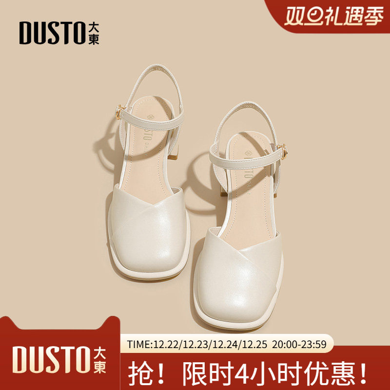 大东后空凉鞋女鞋2025秋季新款简约优雅粗跟高跟方头一字扣0600