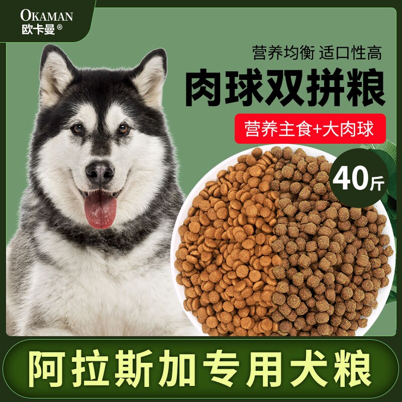 阿拉斯加狗粮40斤装哈士奇狗粮中大型犬专用粮幼犬成犬通用型20kg