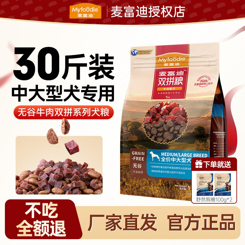 麦富迪狗粮15kg中大型犬成犬30斤可选金毛阿拉斯加通用型冻干狗粮