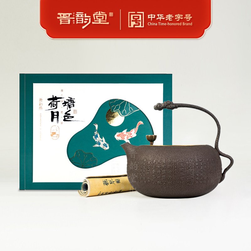 2023年晋韵堂中秋荷塘月色纯手工铸铁壶煮茶壶煮水壶炭火炉茶具