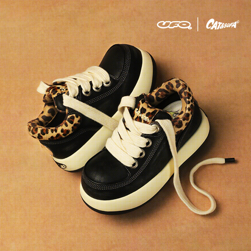 【UFO系列】猫与沙发/黑豹纹大头鞋Q版丑萌鞋厚底增高低帮鞋子