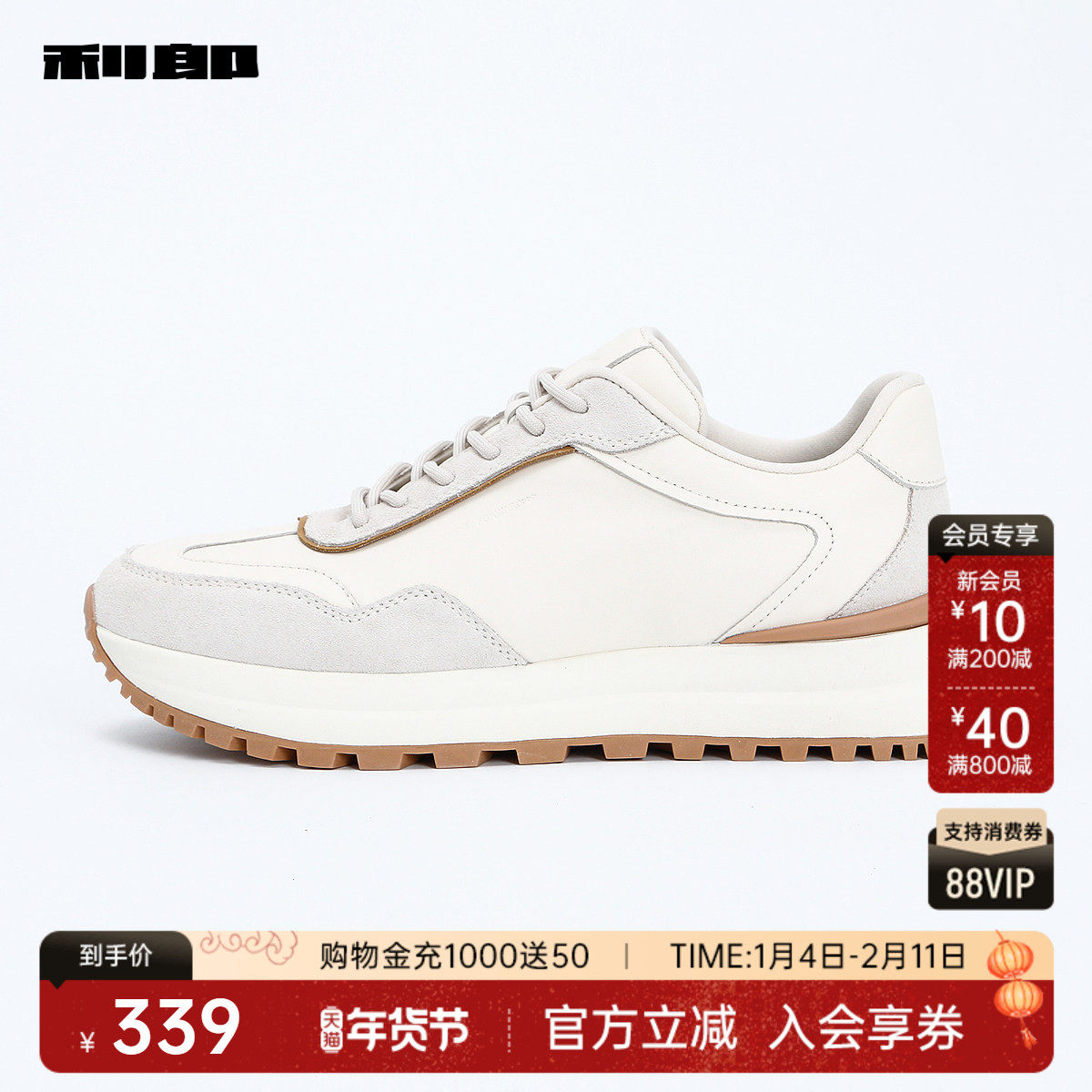 利郎官方 牛皮革运动休闲鞋男士潮流拼接2025新款系带低帮鞋子男