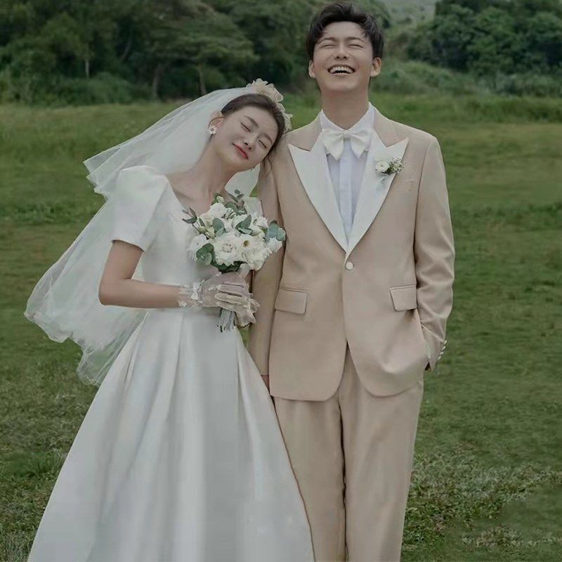 新年影楼拍照男装婚纱照演出礼服舞台街J拍摄影主题旅拍香槟色西