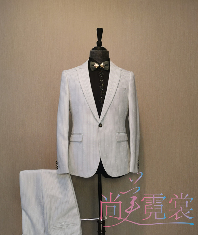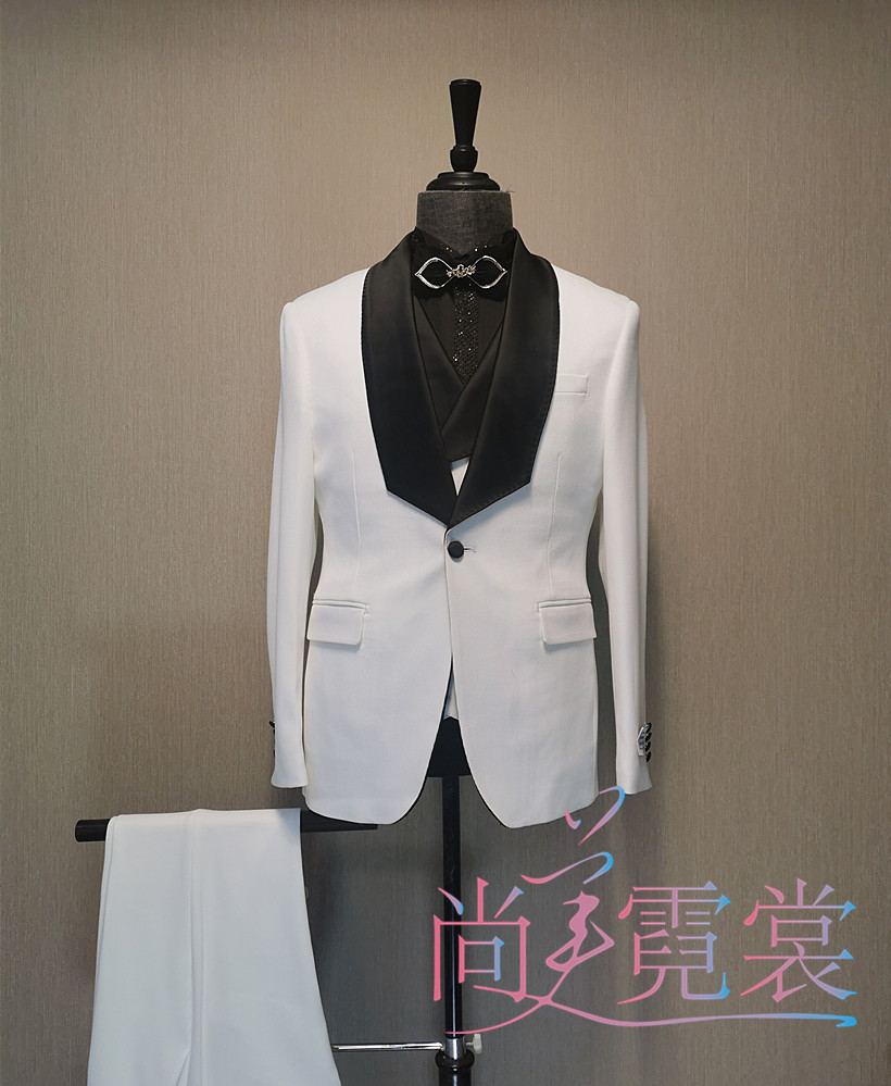 出租男士轻奢西服套装白色帅气青果领西装新郎结婚婚纱照歌手主持