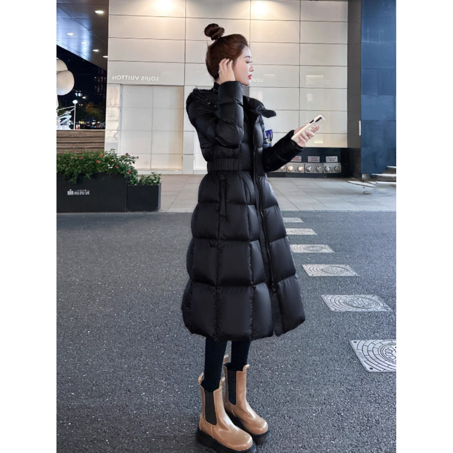 欧货黑色收腰羽绒服女长款过膝修身2025冬季新款高端大气加厚外套