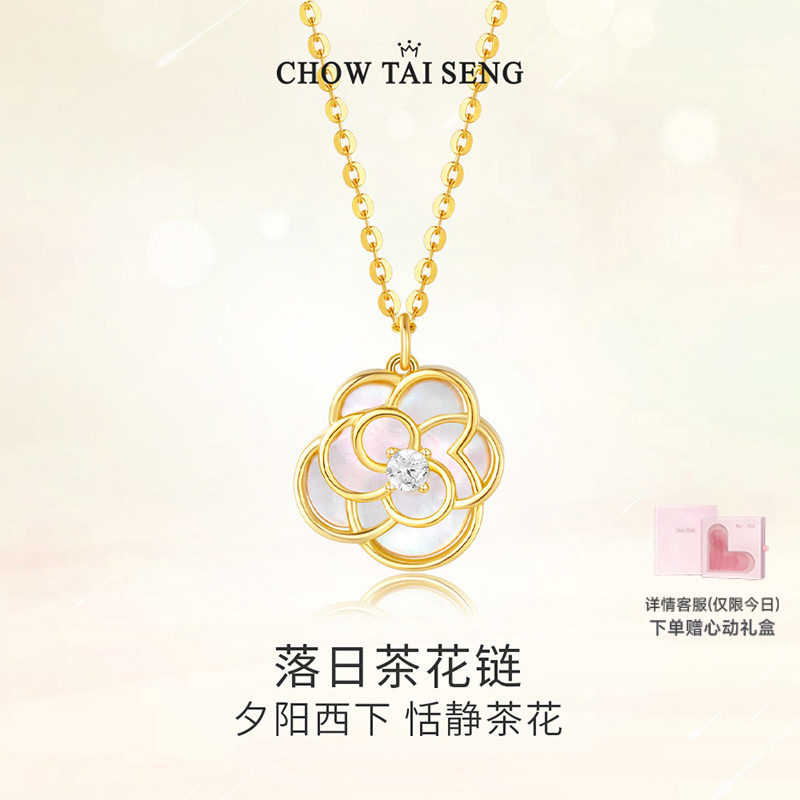 周大生山茶花贝壳项链纯银女生轻奢设计高级感生日送妈妈38节礼物