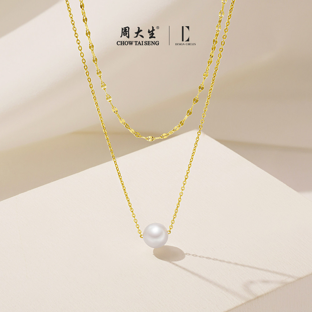周大生DC双层珍珠项链配饰纯银叠戴高级感轻奢小众送女生生日礼物