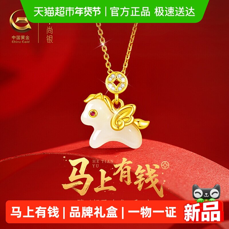 佳然玉饰马年本命年马上有钱和田玉吊坠锁骨链纯银项链女生日礼物