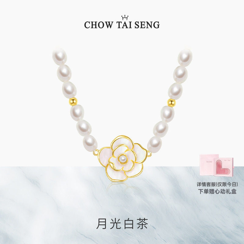 周大生山茶花珍珠项链纯银女生轻奢高级锁骨链生日送妈妈38节礼物