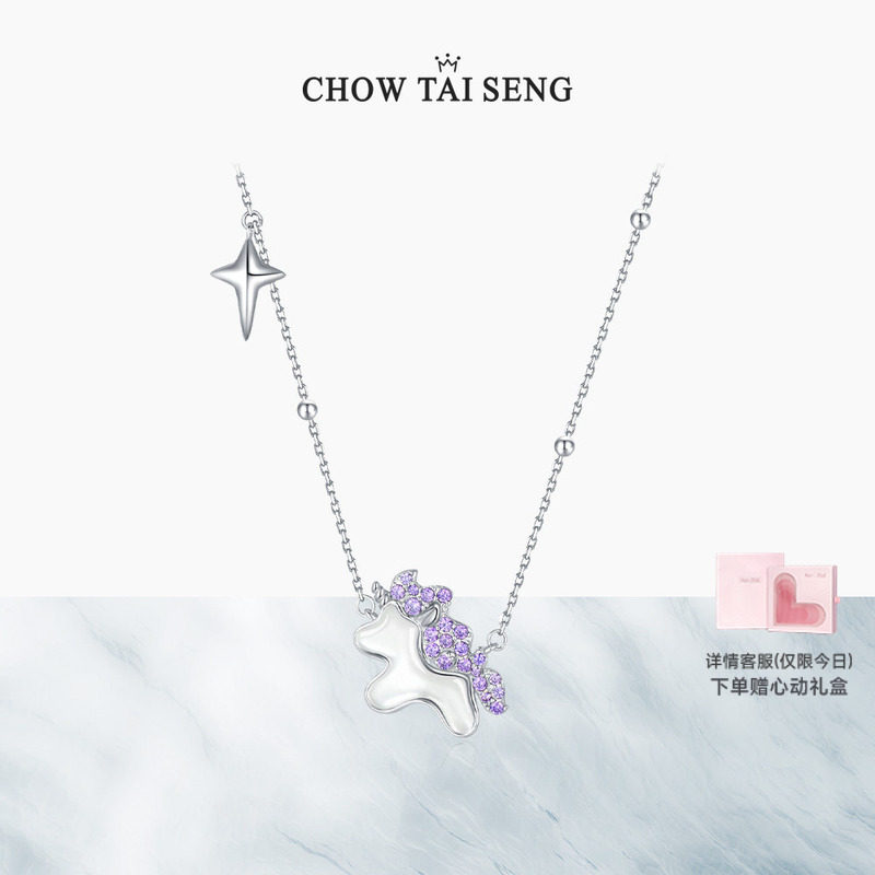 周大生纯银生肖马项链本命年木马可爱百搭吊坠马年送女生生日礼物