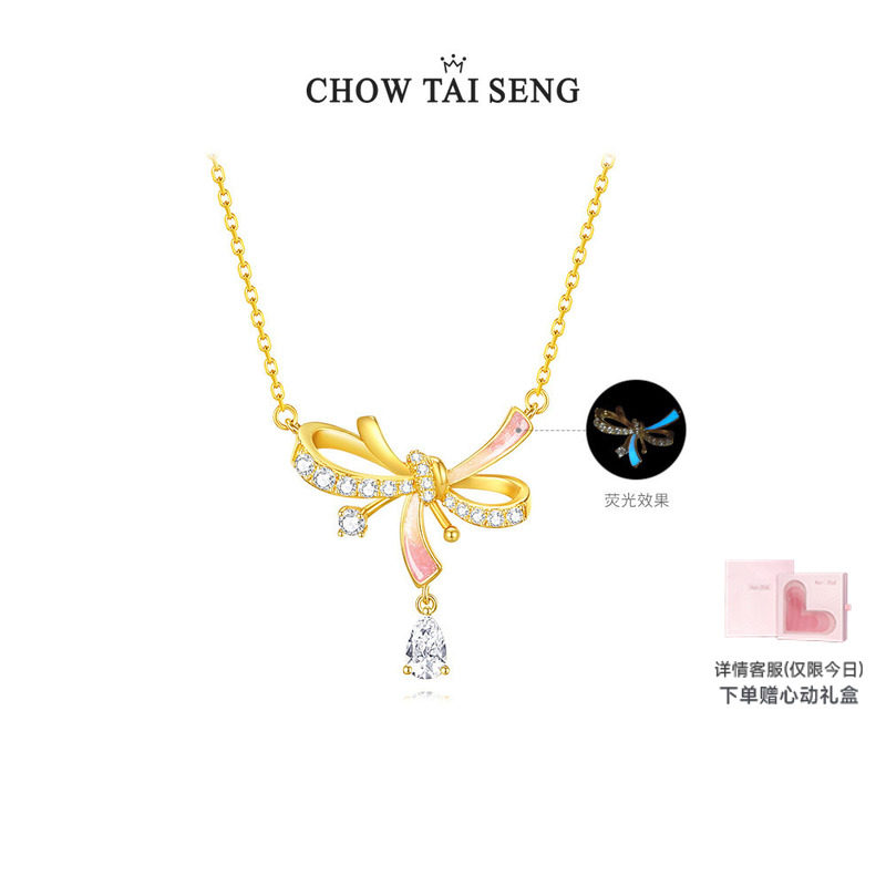 周大生蝴蝶结项链S925纯银女生锁骨链轻奢小众高级生日礼物送女友