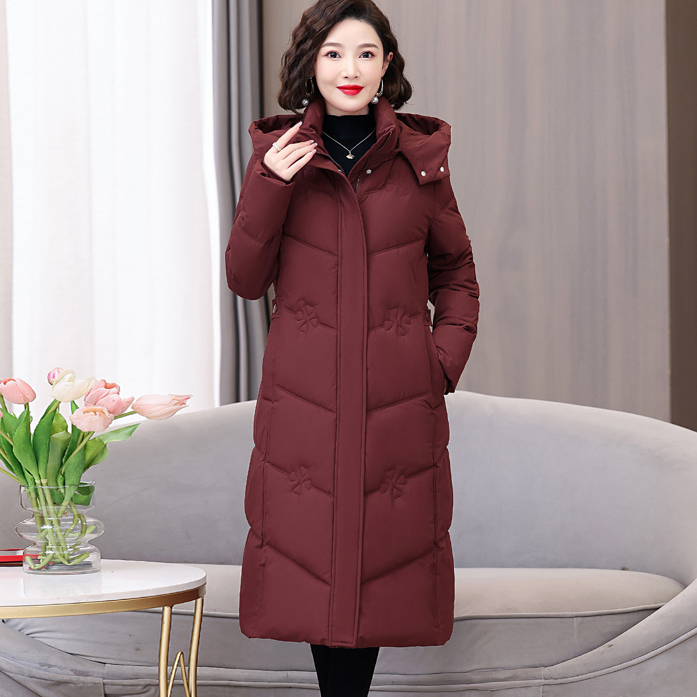 中老年妈妈装羽绒棉衣女长款过膝大码妈妈装冬装外套加厚棉服新款