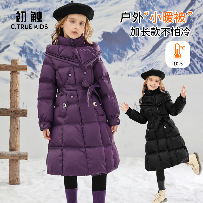 女童冬装羽绒棉服2025新款儿童中大童洋气女孩长款过膝加厚棉衣袄
