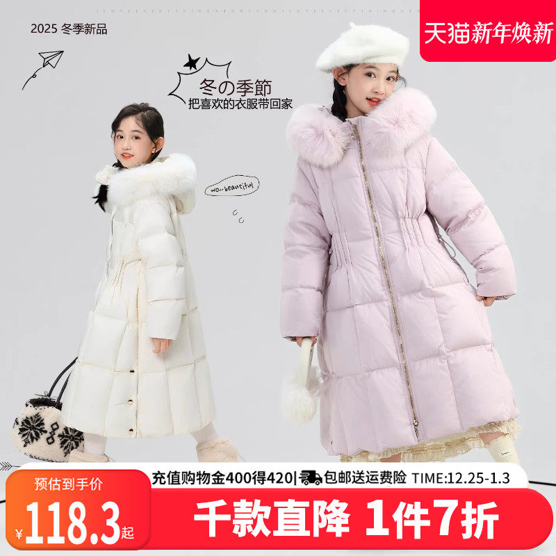 女童冬装羽绒棉衣2025新款中大儿童长款过膝棉服女孩加厚保暖棉袄