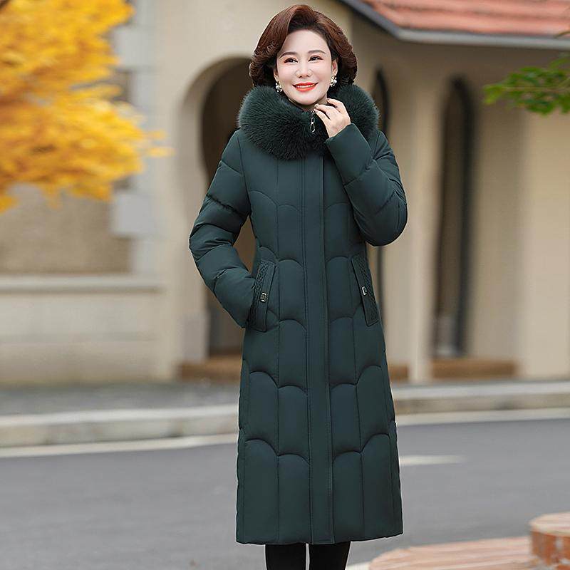 长款过膝冬装加厚新款中老年棉袄羽绒棉服妈妈棉衣大码洋气外套女