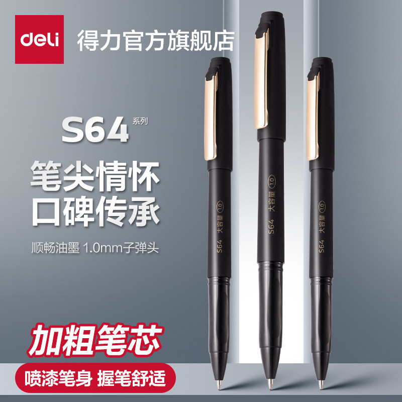 得力签字笔商务办公中性笔0.5/0.7/1.0粗笔芯子弹头黑色水笔碳素笔领导签名笔签单笔签约笔会议笔高档圆珠笔