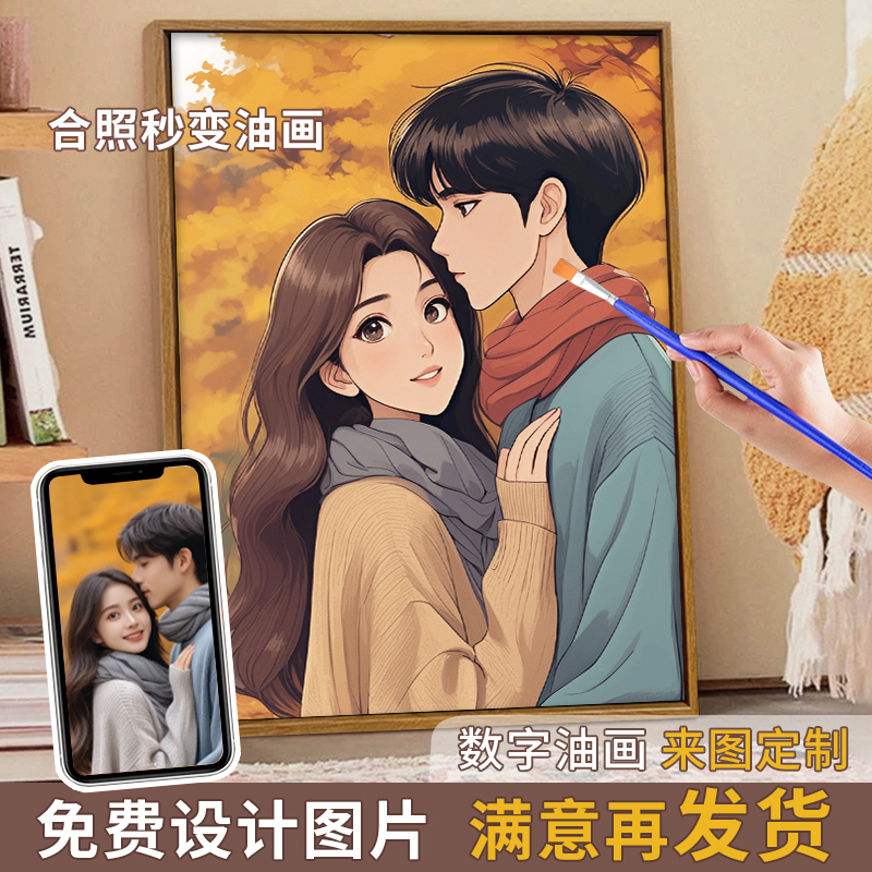 diy数字油画定制定做人物情侣照片手工手绘涂色填充填色油彩画画