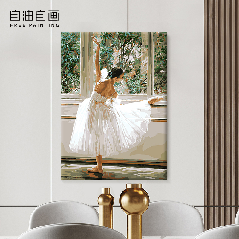 自油自画 数字油画diy 手绘填色涂色填充人物油彩画 跳芭蕾的少女