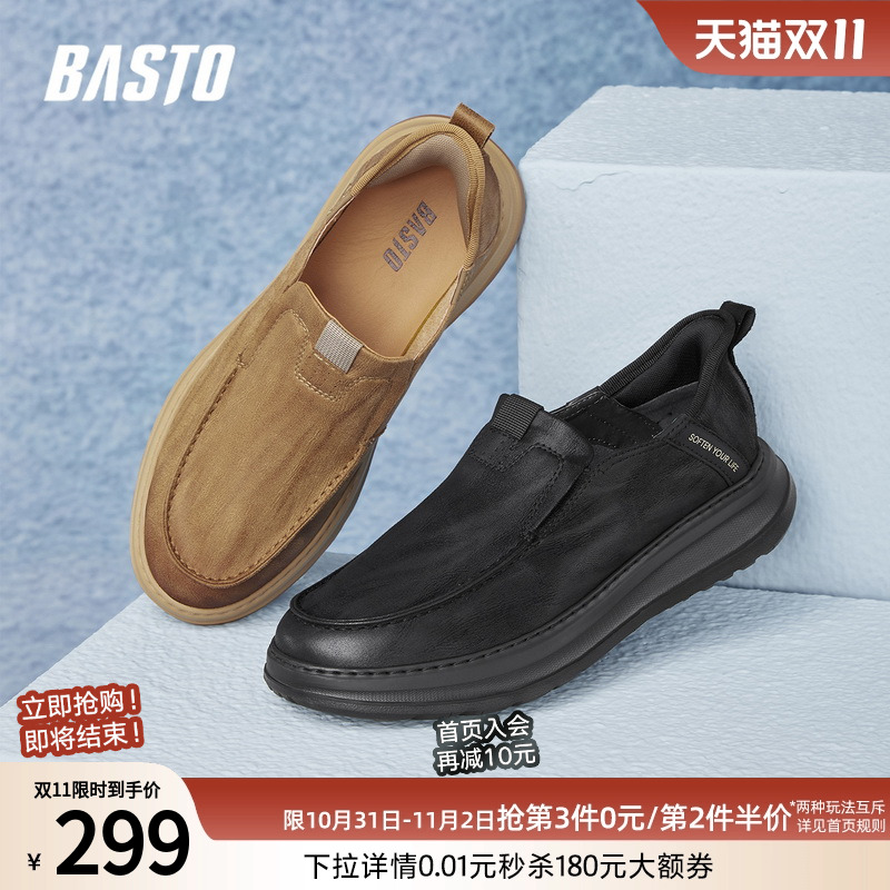 百思图2025秋季商场新款时尚懒人一脚蹬乐福鞋男休闲皮鞋K8970CM5