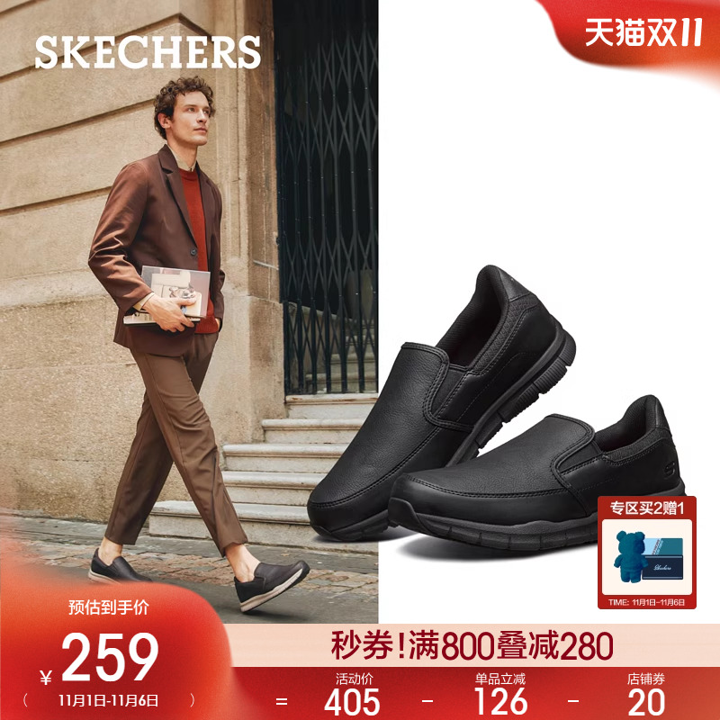 斯凯奇秋冬男子运动休闲皮鞋乐福鞋户外一脚蹬健步懒人鞋商务皮鞋